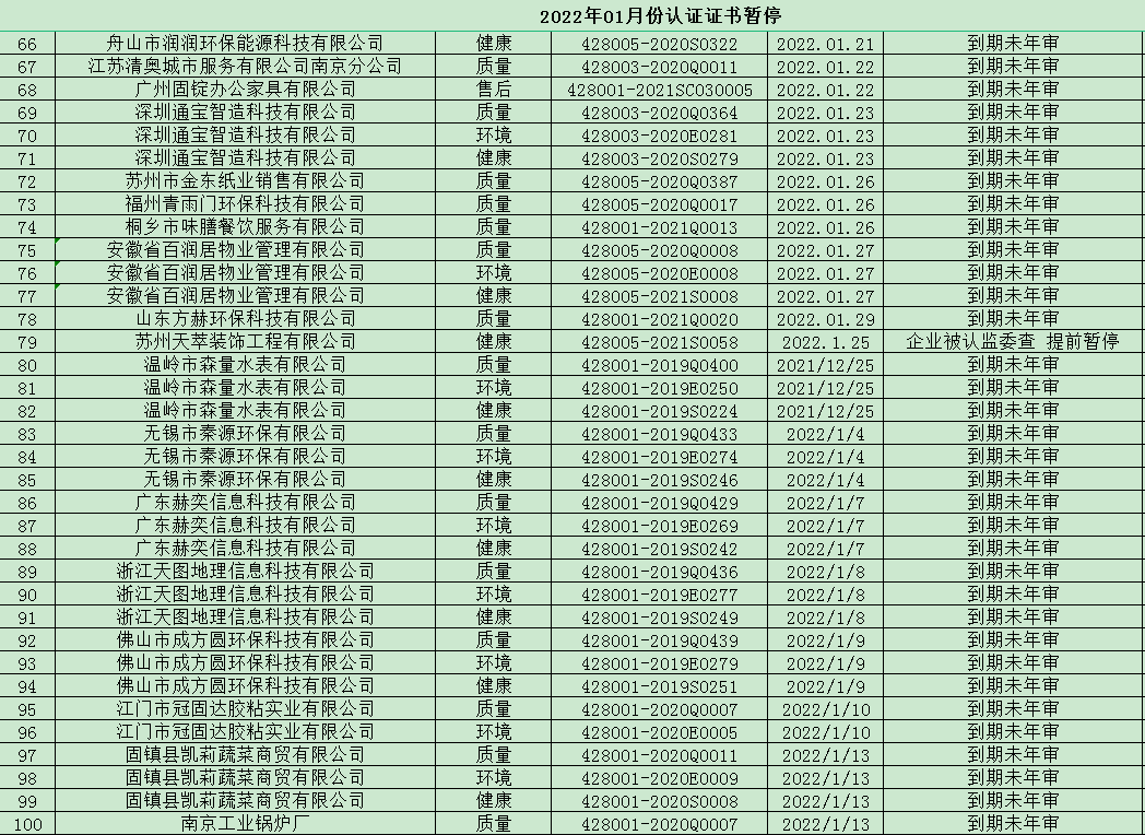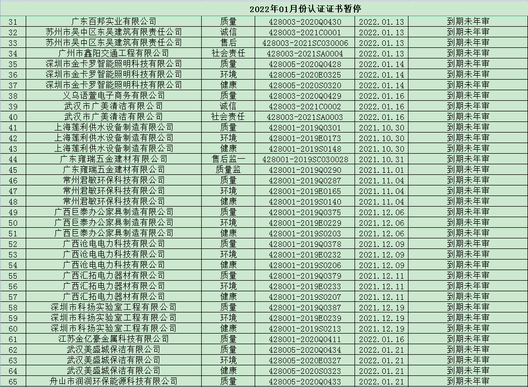 您的位置: 首頁 新聞中心 公司公告 2022年1月暫停名單